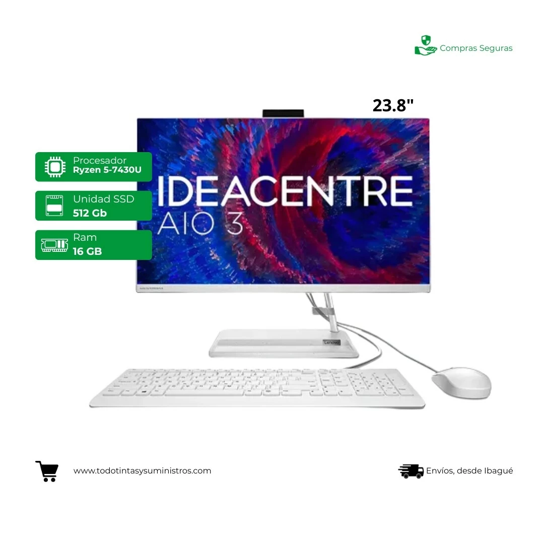 Todo en uno Lenovo Ideacentre 3 24ALC6 Ryzen 5-7430U Ram 16 Gb Ssd 512Gb 23.8"