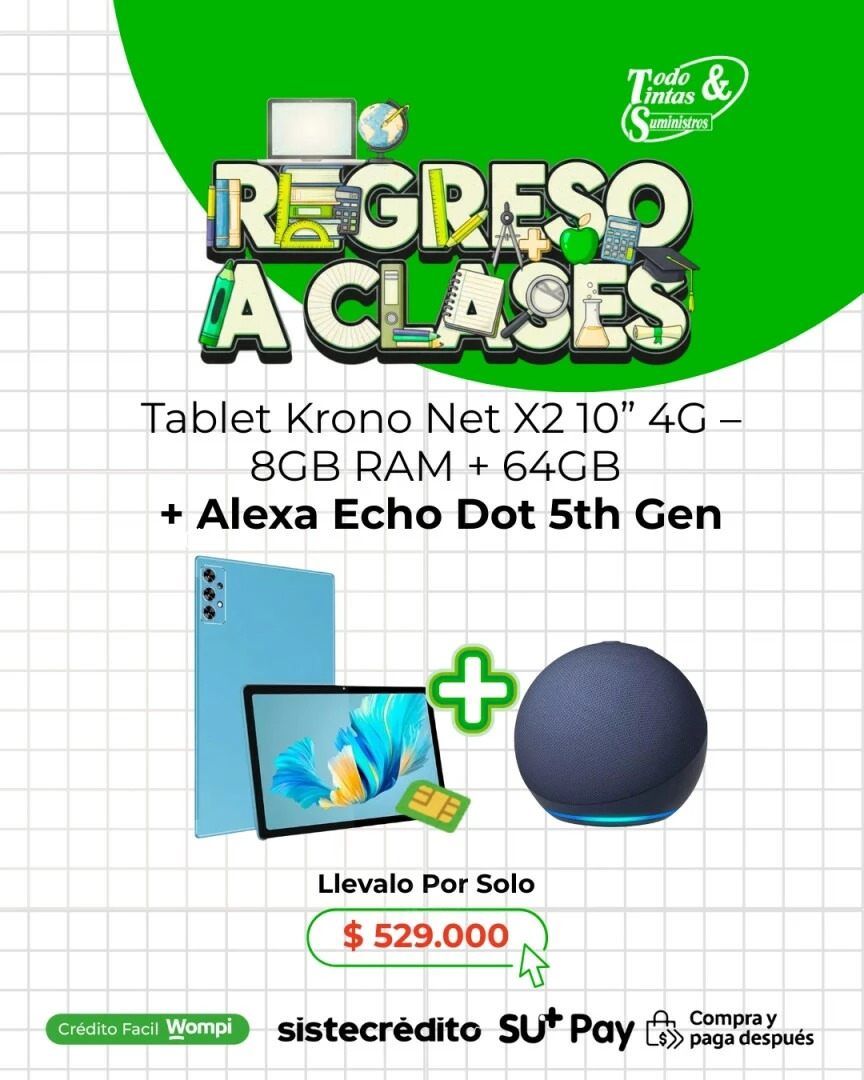 Tablet Krono Net X2 10” 4G – 8GB RAM + 64GB + Alexa Echo Dot 5th Gen