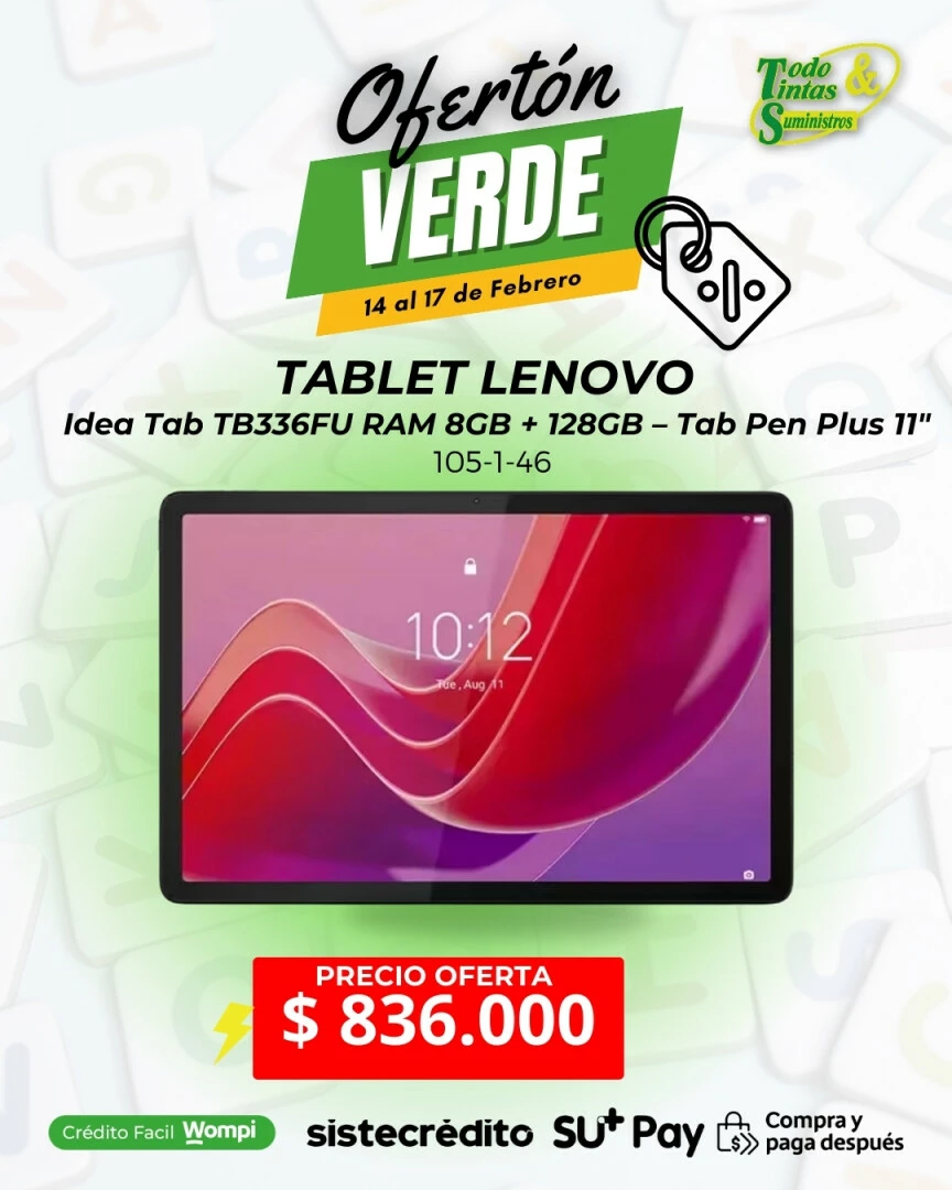 Tablet Lenovo Idea Tab TB336FU 11" Ram 8Gb + 128GB Incluye Lapiz Digital y Teclado