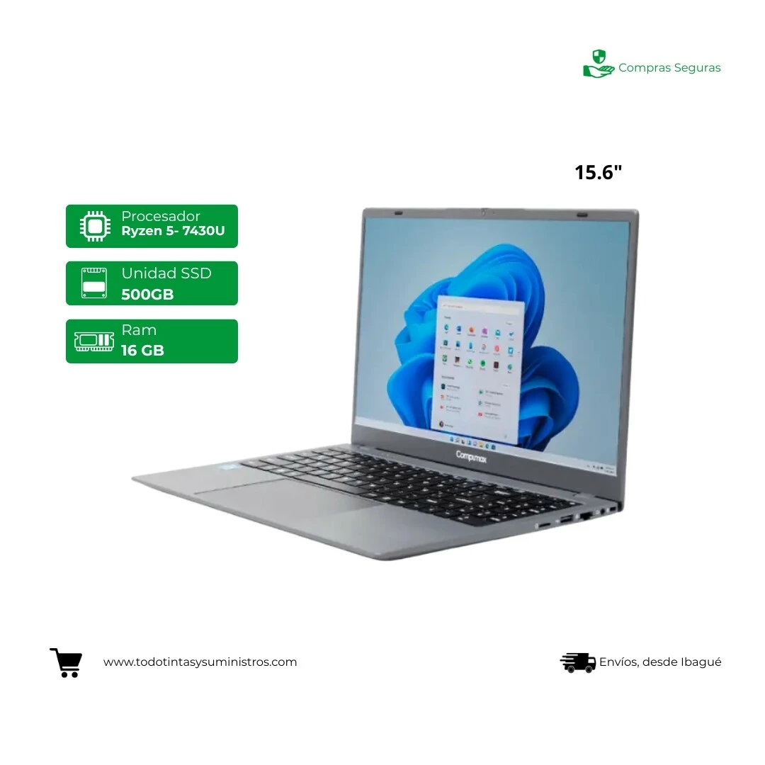 Portátil Compumax Onix Ryzen 5 7430U Ram 16Gb Ssd 500Gb 15.6"