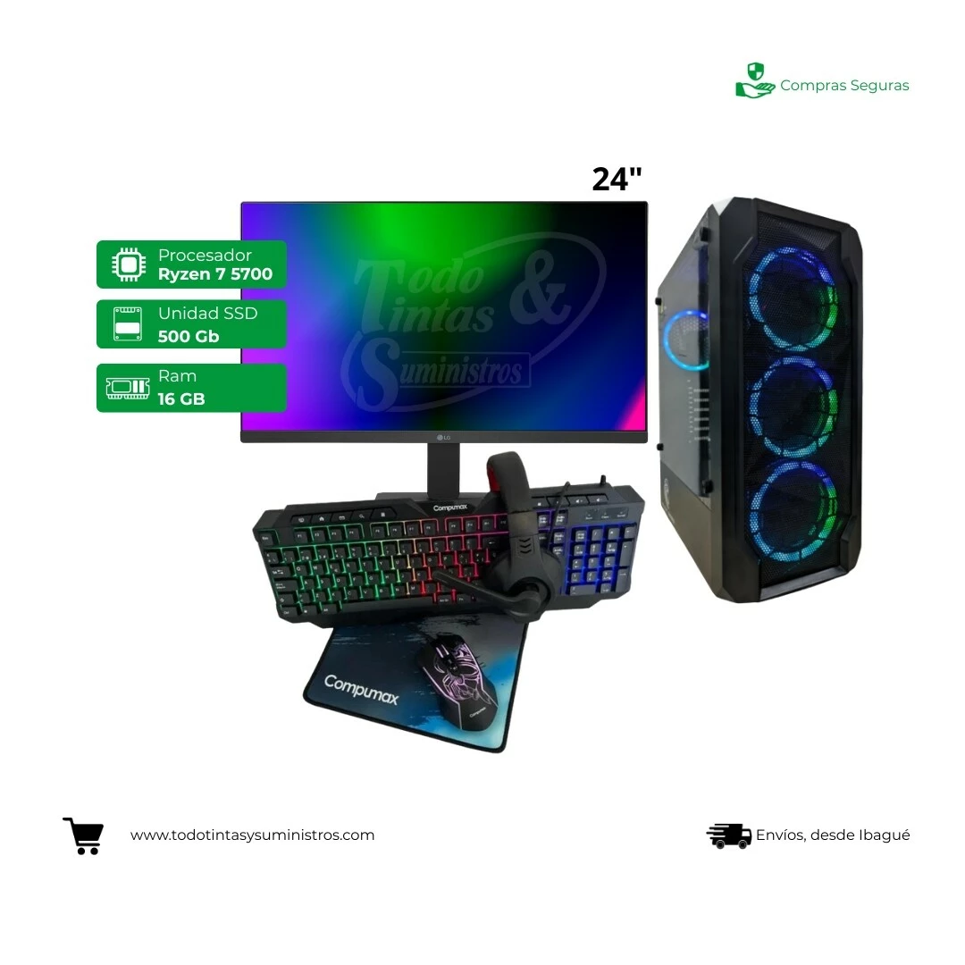 Computador Compumax 24" Ryzen 7 -5700 Ram 16Gb Ssd 500Gb + Soporte de monitor tipo Clip