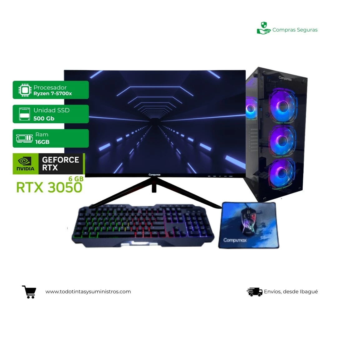 Computador Compumax Ryzen 7-5700x Ram 16Gb Ssd 500Gb TV 3050 Rtx 6 GB 24" + Licencia Kaspersky
