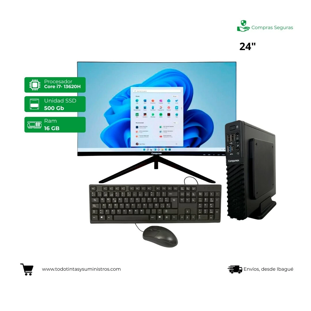 Computador de Escritorio Compumax Core i7- 13620H Ram 16GB Ssd 500GB 24" - Mini Torre