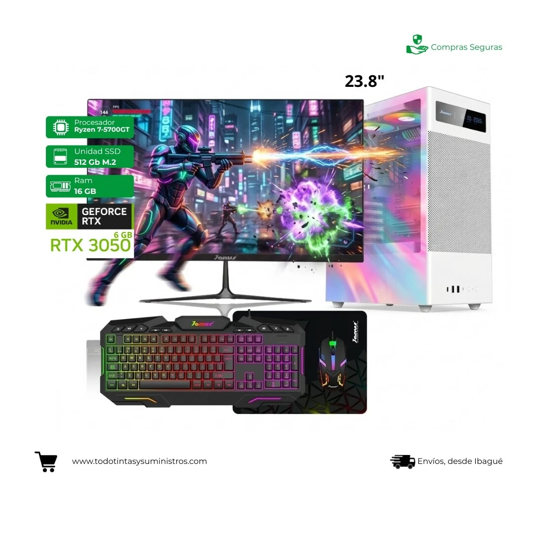 Computador Gamer Janus Ryzen 7 5700GT Ram 16Gb Ssd 512 M.2 RTX 3050 6GB Monitor 23.8"