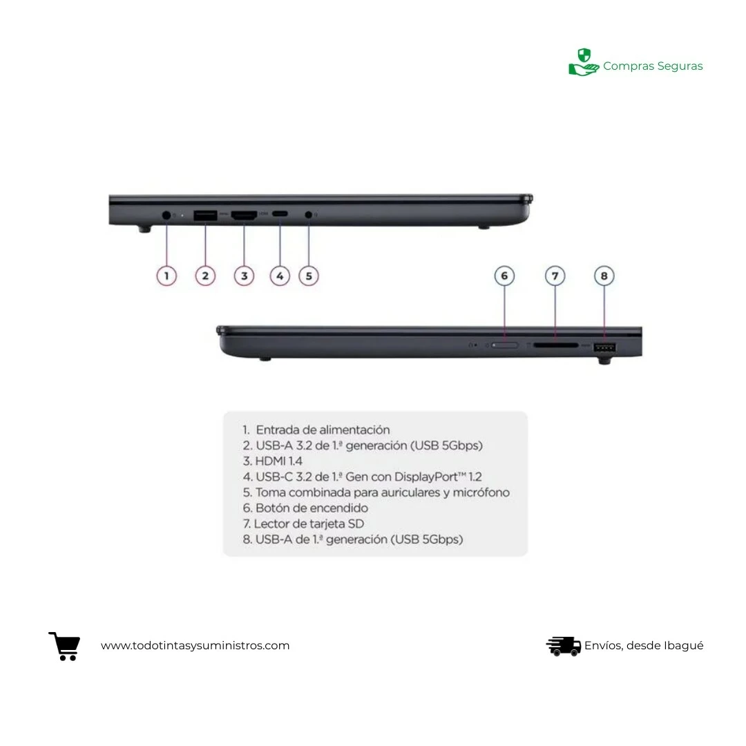 - Puertos: USB-A, USB-C, HDMI, lector SD, jack 3.5 mm